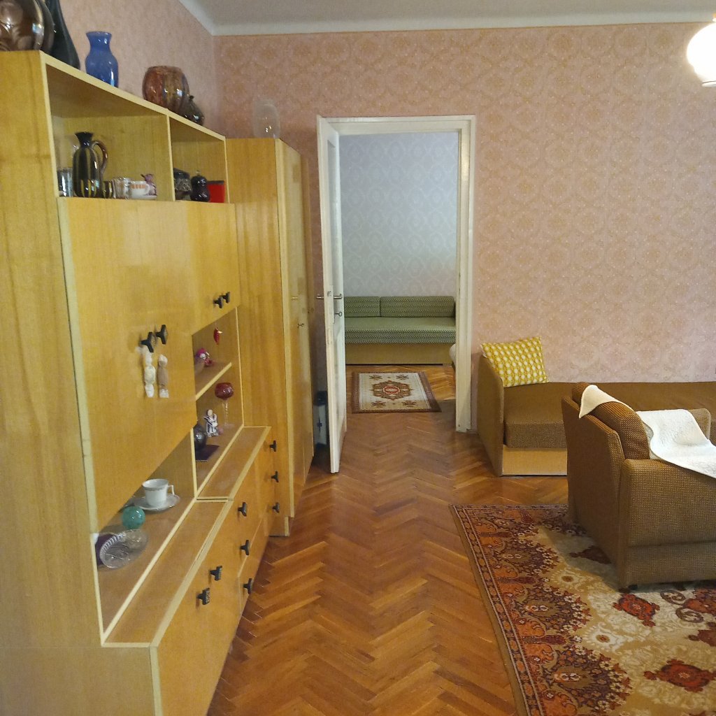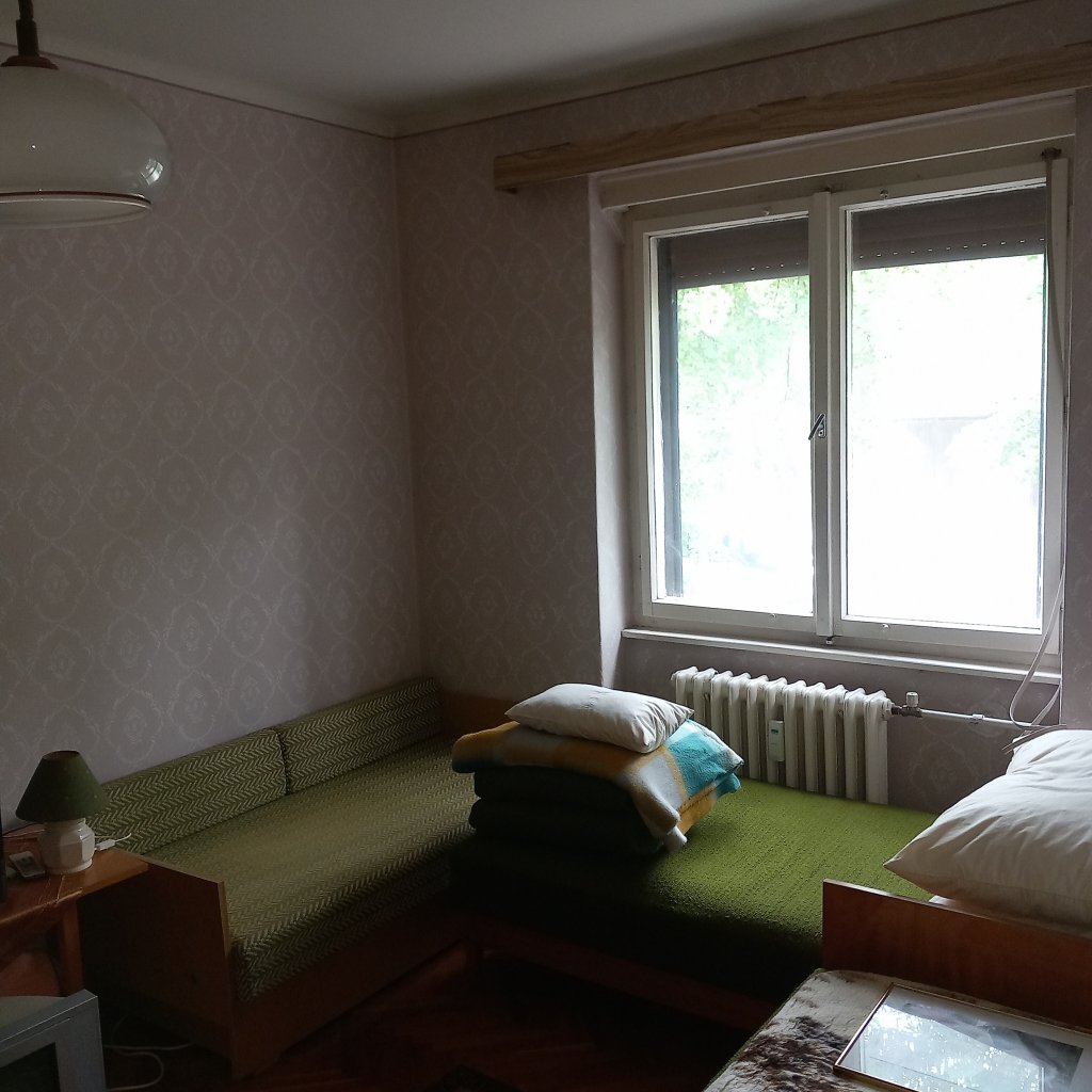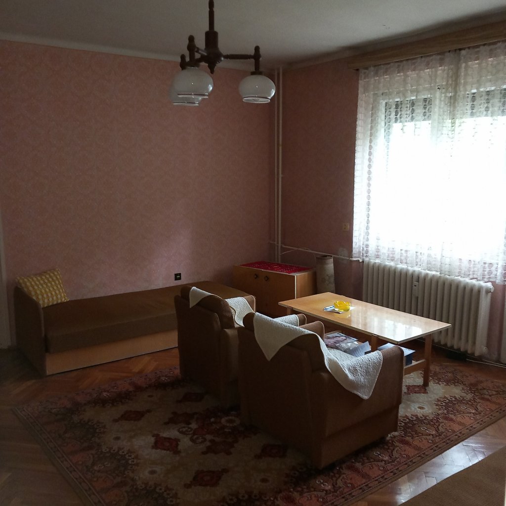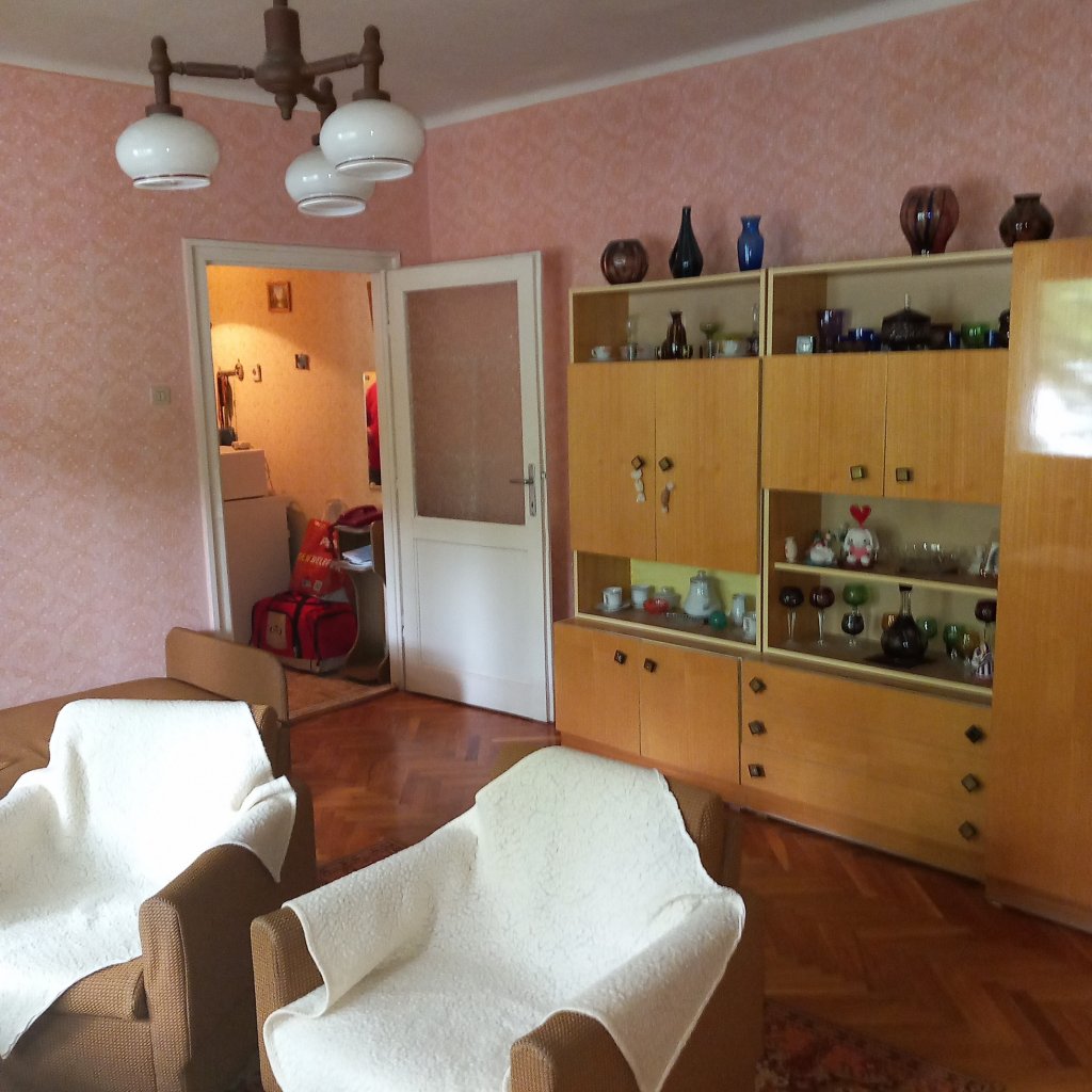 Eladásra kínálunk egy tégla építésű, két szobás lakást a városközpontban. A nappaliból nyíló erkély az épület mögötti területre néz, ugyan úgy, mint a lakás ablakai is. A kisebbik szoba a nappaliból közelíthető meg. A konyha felől egy kamra is található. A szobák burkolata parketta, a többi helyen linóleum van.